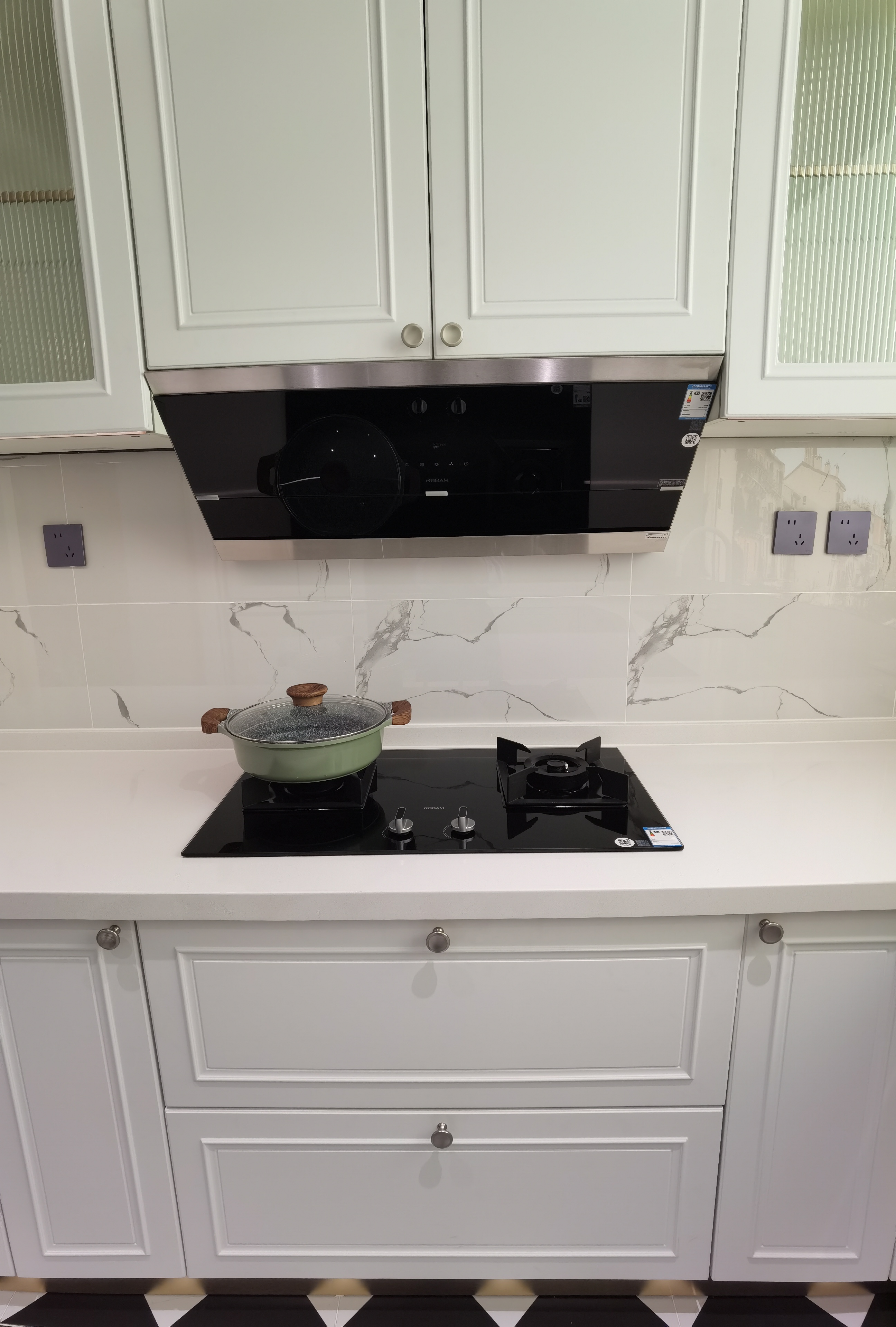另外,需要提醒大家的是灶台台面选材,追求性价比可以直接用石英石,岩板显得高级但是更贵。